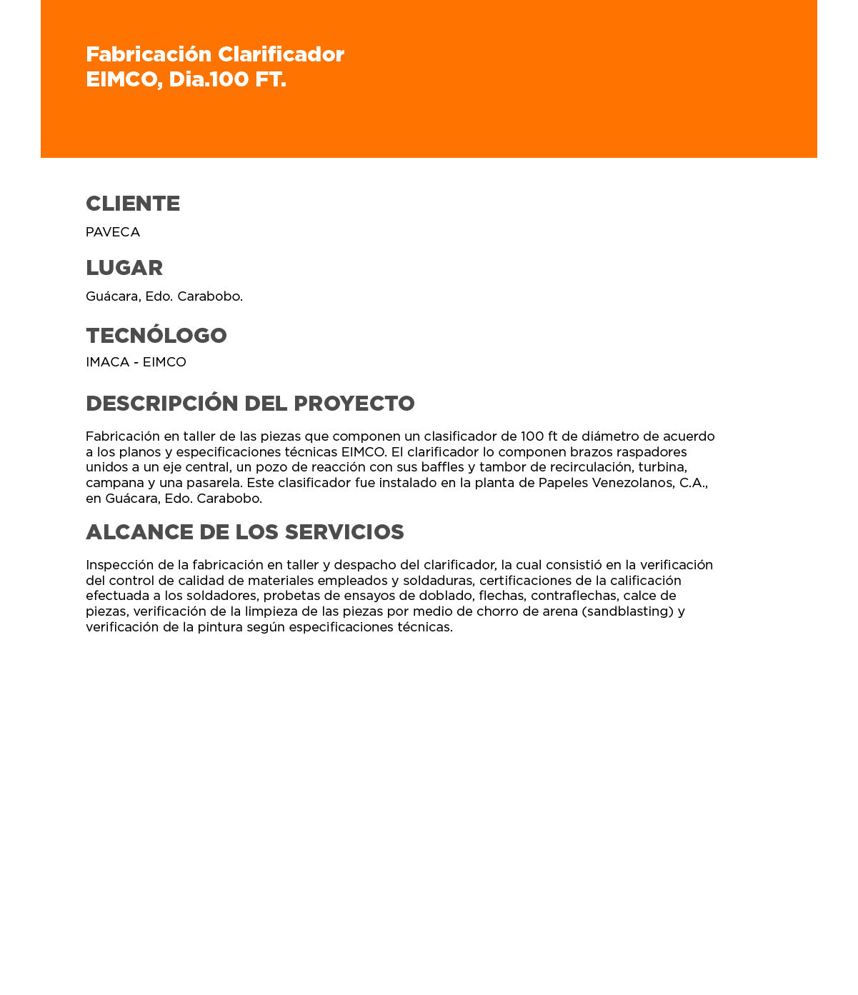 FABRICACIÓN CLARIFICADOR EIMCO DÍA 100 FT. PAVECA.