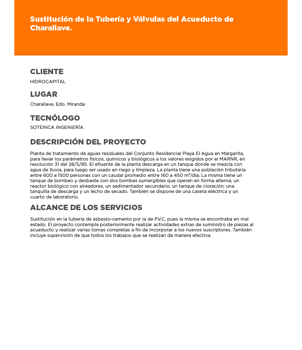 SUSTITUCIÓN DE LA TUBERÍA Y VÁLVULAS DEL ACUEDUCTO DE CHARALLAVE.